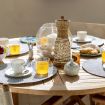 La zona giorno è composta da un'arioso soggiorno con cucina attrezzata che funge da punto di snodo tra le due verande, di cui una chiusa da delle vetrate di ultima generazione e una aperta, perfetta per godere del fresco della sera durante le cene estive e primaverili. La veranda chiusa è riservata all'area relax con un divano e delle poltrone, vivibile comodamente in tutti i periodi dell'anno. Entrambe le verande sono dotate di tende per il sole.